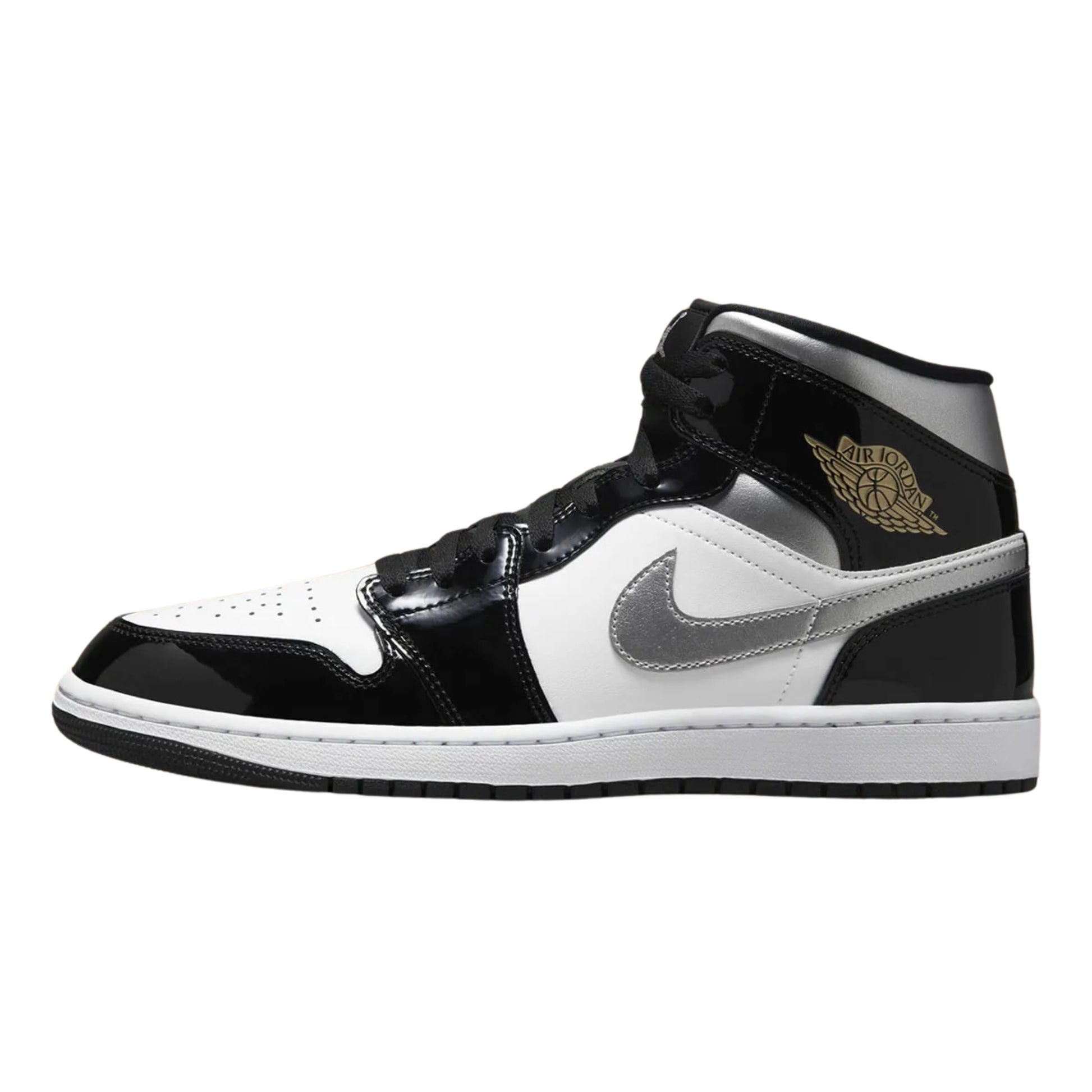Jordan 1 Mid Patent Black Metallic Silver